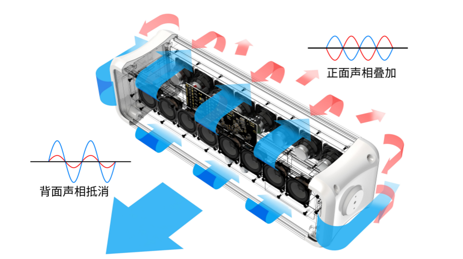 (圖注:雙面發(fā)聲,背面揚聲器進行回聲抵消)