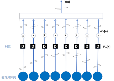 該技術(shù)也稱為波束成型,這是一種直接定位方法,基本思想是對麥克風(fēng)所接收到的聲音信號加權(quán)求和來形成波束,通過調(diào)整權(quán)值使麥克風(fēng)陣列的輸出功率最大,波束輸出功率的點就是聲源的位置。傳統(tǒng)的波束形成器的權(quán)值取決于各陣元上信號的相位延遲,而相位又和時延以及聲音的到達時間差有關(guān),故又稱為時延求和波束形成器。