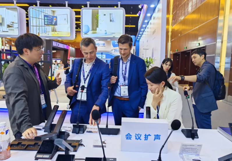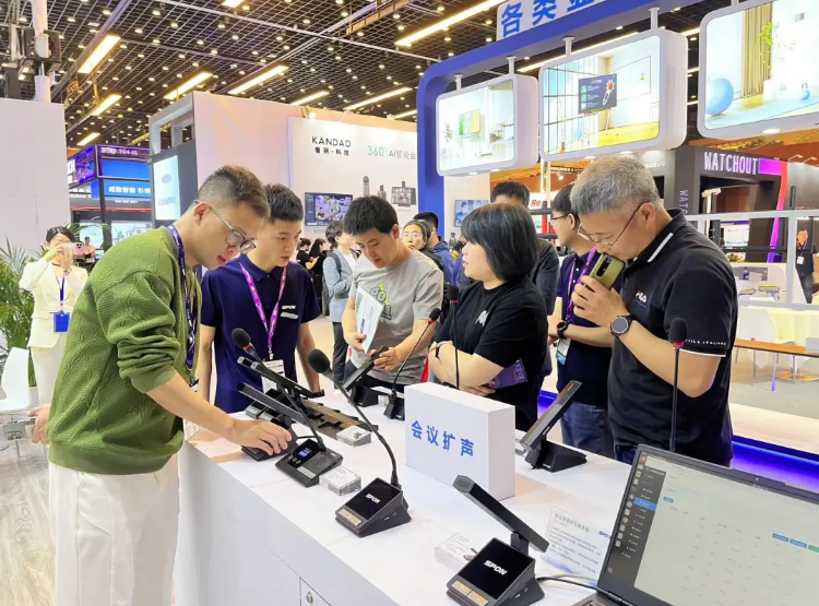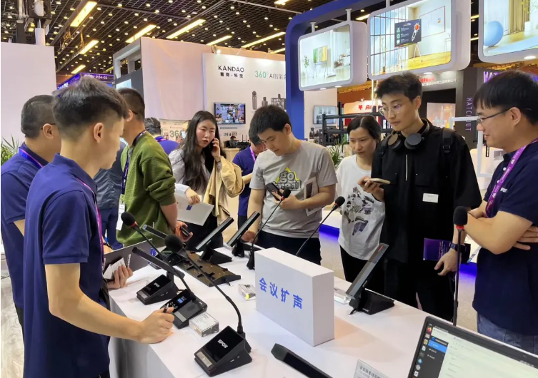 現(xiàn)場人潮攢動(dòng)、絡(luò)繹不絕。世邦向來自世界各地的朋友展示世邦產(chǎn)品及場景應(yīng)用解決方案,運(yùn)用人工智能等新一代信息技術(shù)構(gòu)建智慧生態(tài),守護(hù)美好生活。世邦賦能專業(yè)視聽,此次展會(huì)展示的IP公共廣播系統(tǒng)、IP數(shù)字會(huì)議系統(tǒng)、定向音柱等專業(yè)視聽技術(shù)產(chǎn)品及創(chuàng)新解決方案都受到熱烈歡迎。