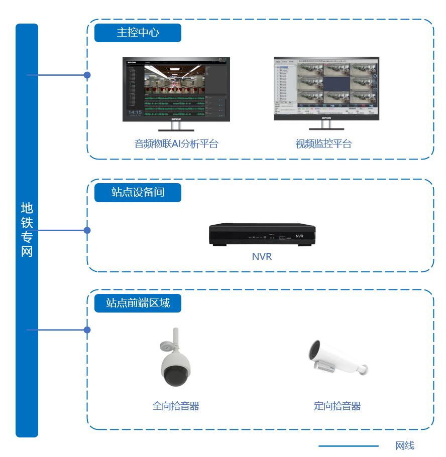 我們針對軌道交通行業(yè)發(fā)展現(xiàn)狀,專為軌道交通行業(yè)場景定制音頻監(jiān)控系統(tǒng)方案。方案覆蓋站點出入口、服務中心、安檢口、主要通道、等候區(qū)等重要場景的音頻監(jiān)控,具備網(wǎng)絡化管理、實時監(jiān)聽、音頻回放等功能,實現(xiàn)與視頻監(jiān)控互聯(lián)互控、共享共用,形成基本覆蓋軌道交通站點治安防范區(qū)域的全天候音視頻監(jiān)控網(wǎng)絡,快速提升軌道交通治安監(jiān)控、管理的能力與水平,創(chuàng)造安全、和諧的乘車環(huán)境。