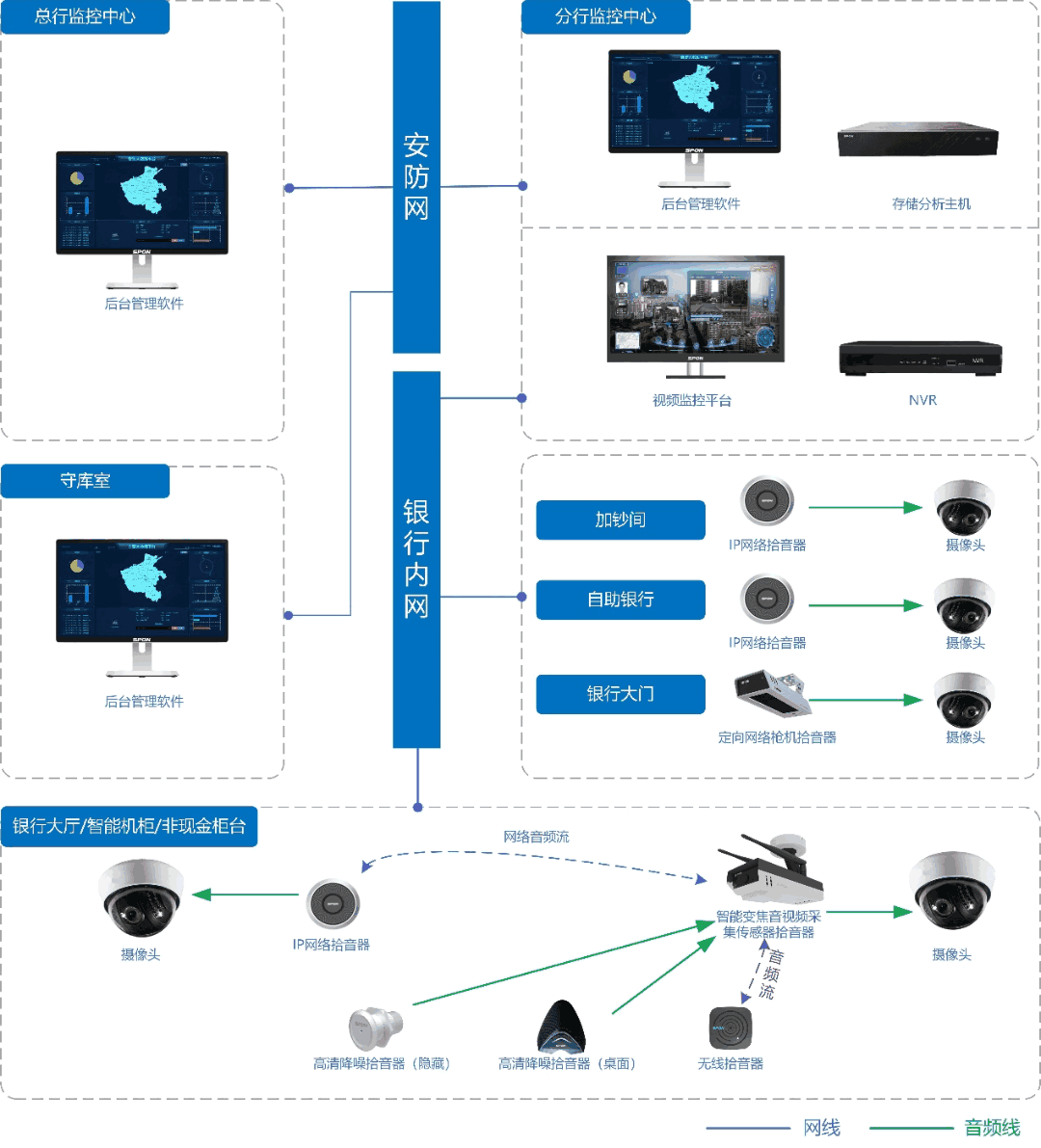 將音頻監(jiān)控系統(tǒng)集成化,網(wǎng)絡(luò)化,智能化已是目前銀行業(yè)安保工作發(fā)展的趨勢(shì)和需要。
