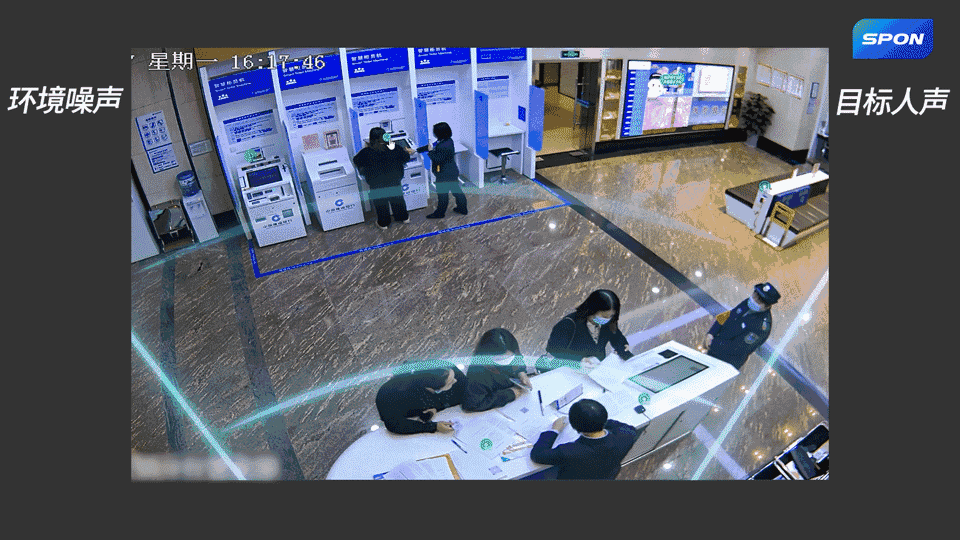 現(xiàn)有問題:低柜非現(xiàn)金業(yè)務(wù)是重要的業(yè)務(wù)辦理區(qū)域,現(xiàn)有的音視頻監(jiān)控通常是“柜臺(tái)、攝像頭、拾音器”一一對(duì)應(yīng),非現(xiàn)金業(yè)務(wù)區(qū)臨近營(yíng)業(yè)廳人流量較大因此環(huán)境噪音、廣播叫號(hào)聲、不同業(yè)務(wù)辦理間的干擾聲,都是影響低柜區(qū)域拾音質(zhì)量的因素。